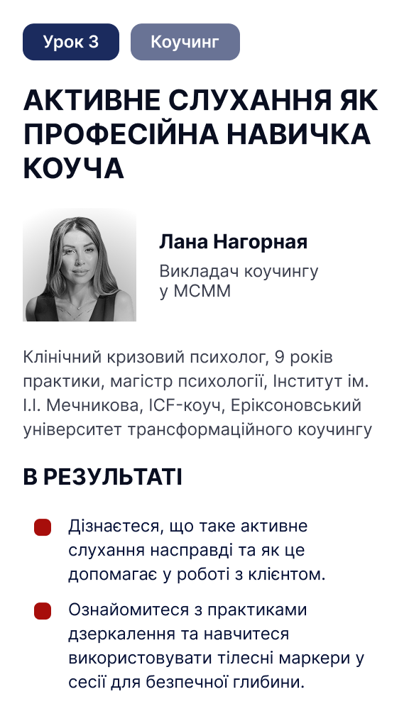 підтримуємо та надаємо чесний фідбек –– після кожного уроку у вас є конкретний крок для клієнта й для себе.