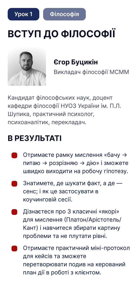перетворюємо величезний обʼєм складних тем з філософії, психології та НЛП у прості міні-протоколи, які працюють у реальних задачах щодня